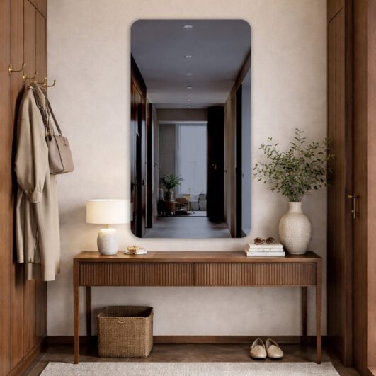 Stačiakampis veidrodis su užapvalintais kampais – grafito